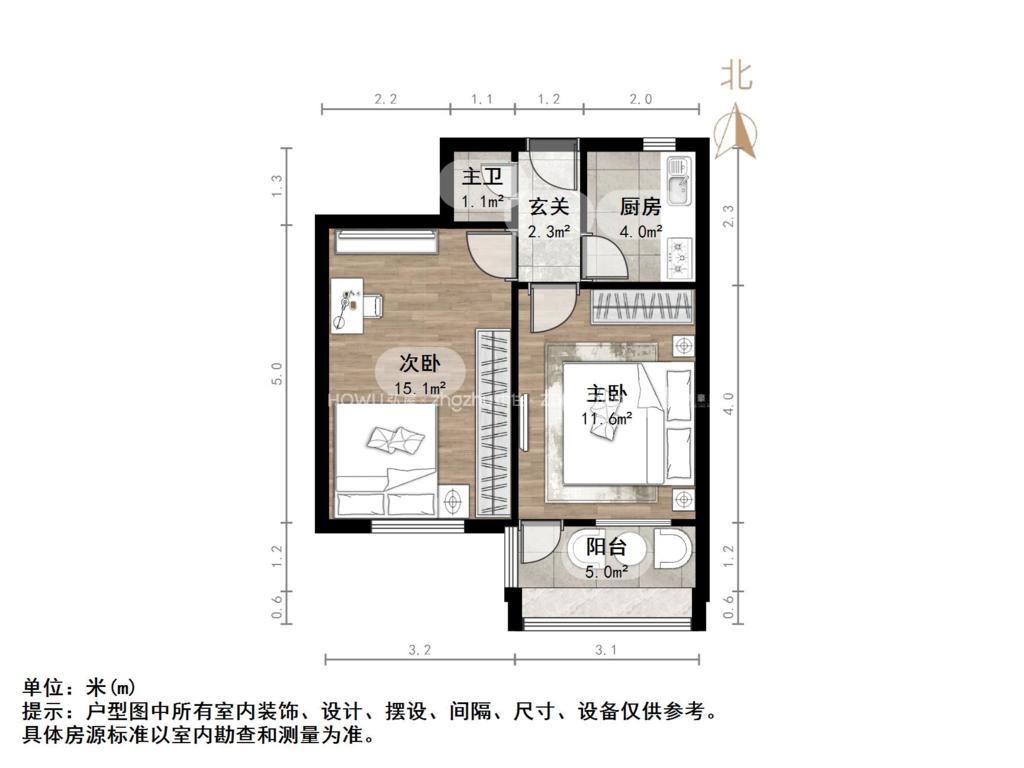 朝向南北 建筑面积60㎡