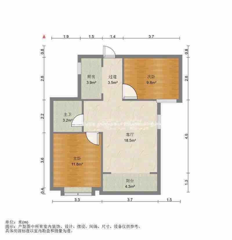 厅室2室1厅1卫1阳台