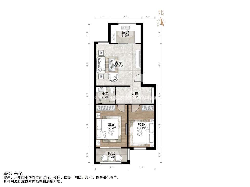 朝向南北 建筑面积84㎡