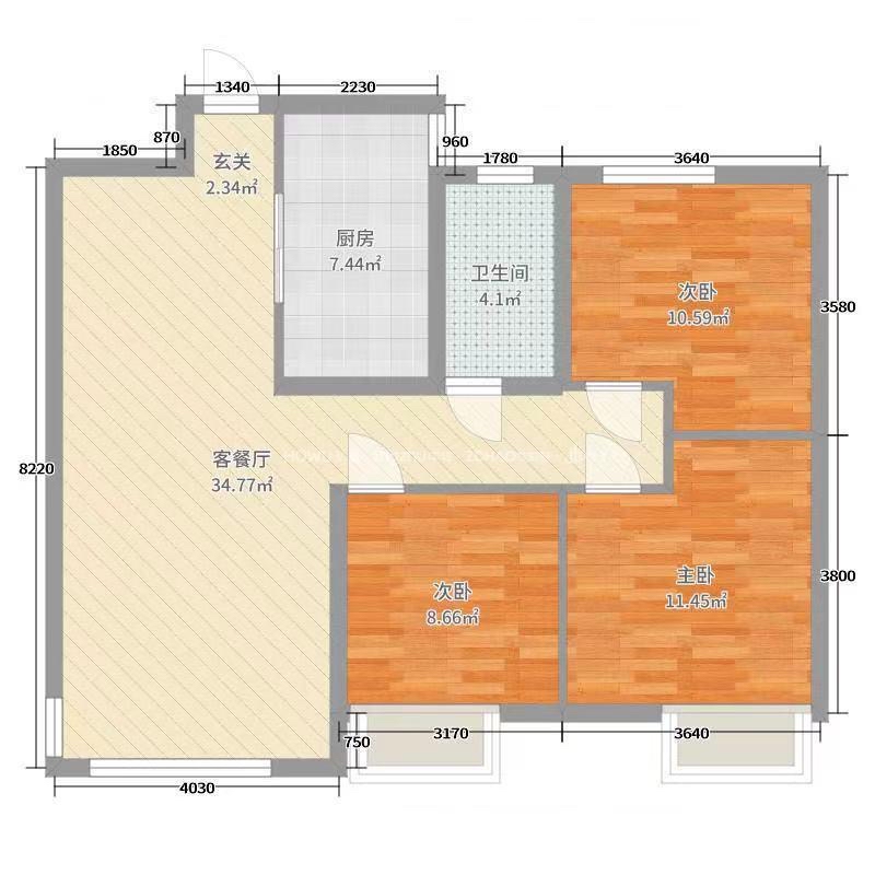 厅室3室2厅1卫1阳台