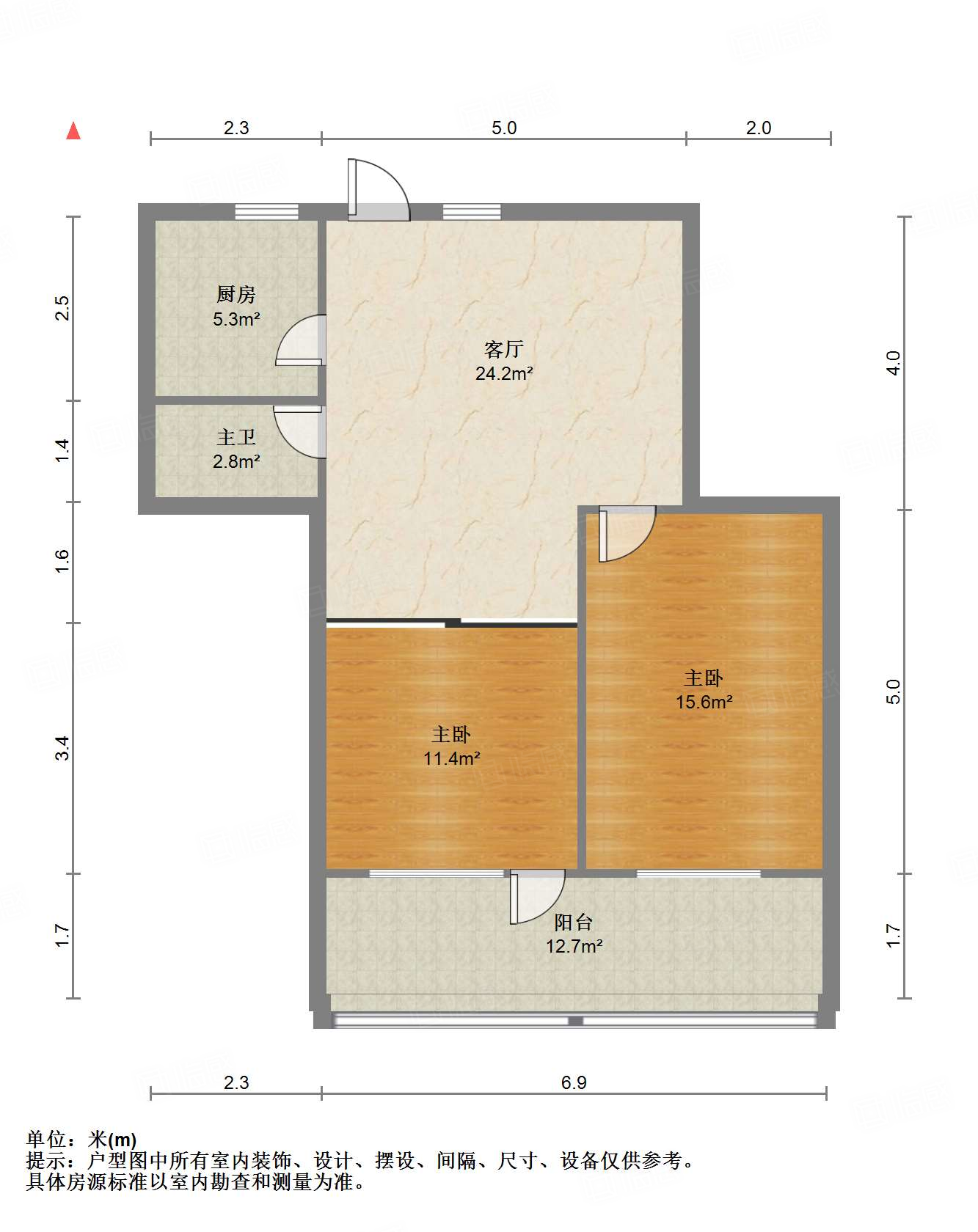 户型方正,南北通透,两室朝阳;布局合理,面积没有浪费;