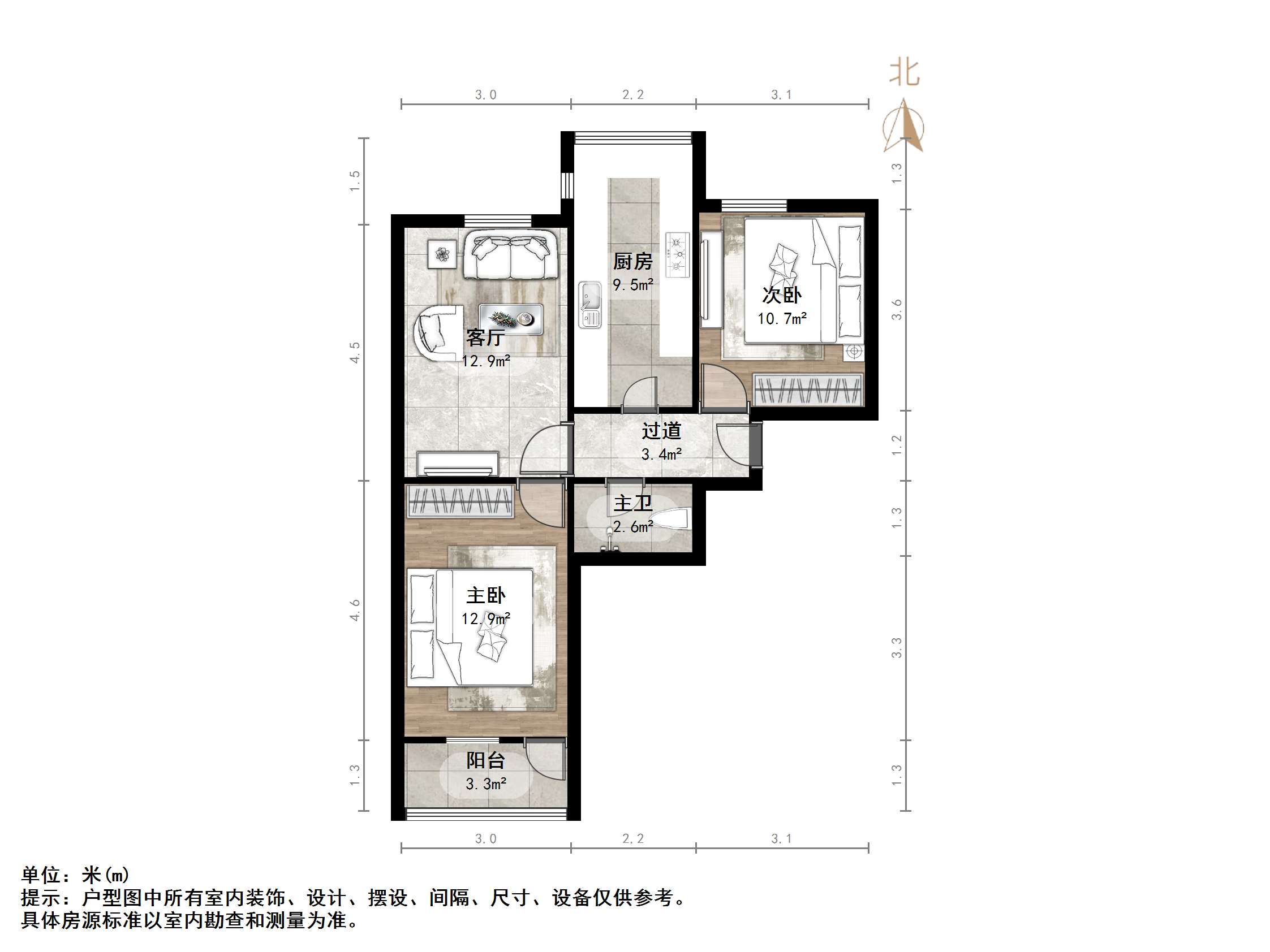 【户型】:经典三室一厅,主卧朝南采光好,南北通透通风佳,客厅方正好用!