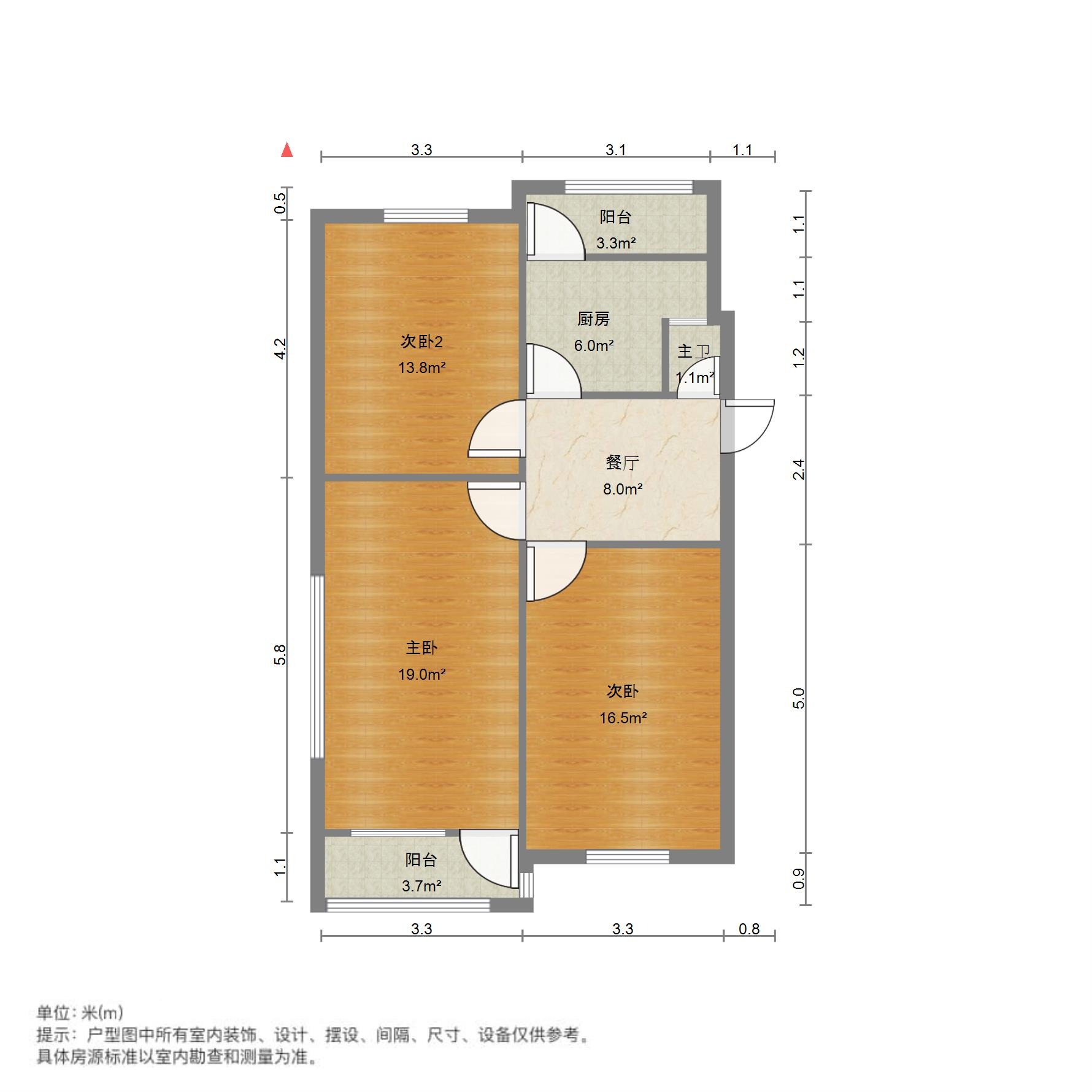 户型介绍:户型方正,南北通透,两室朝阳;布局合理,面积没有浪费;