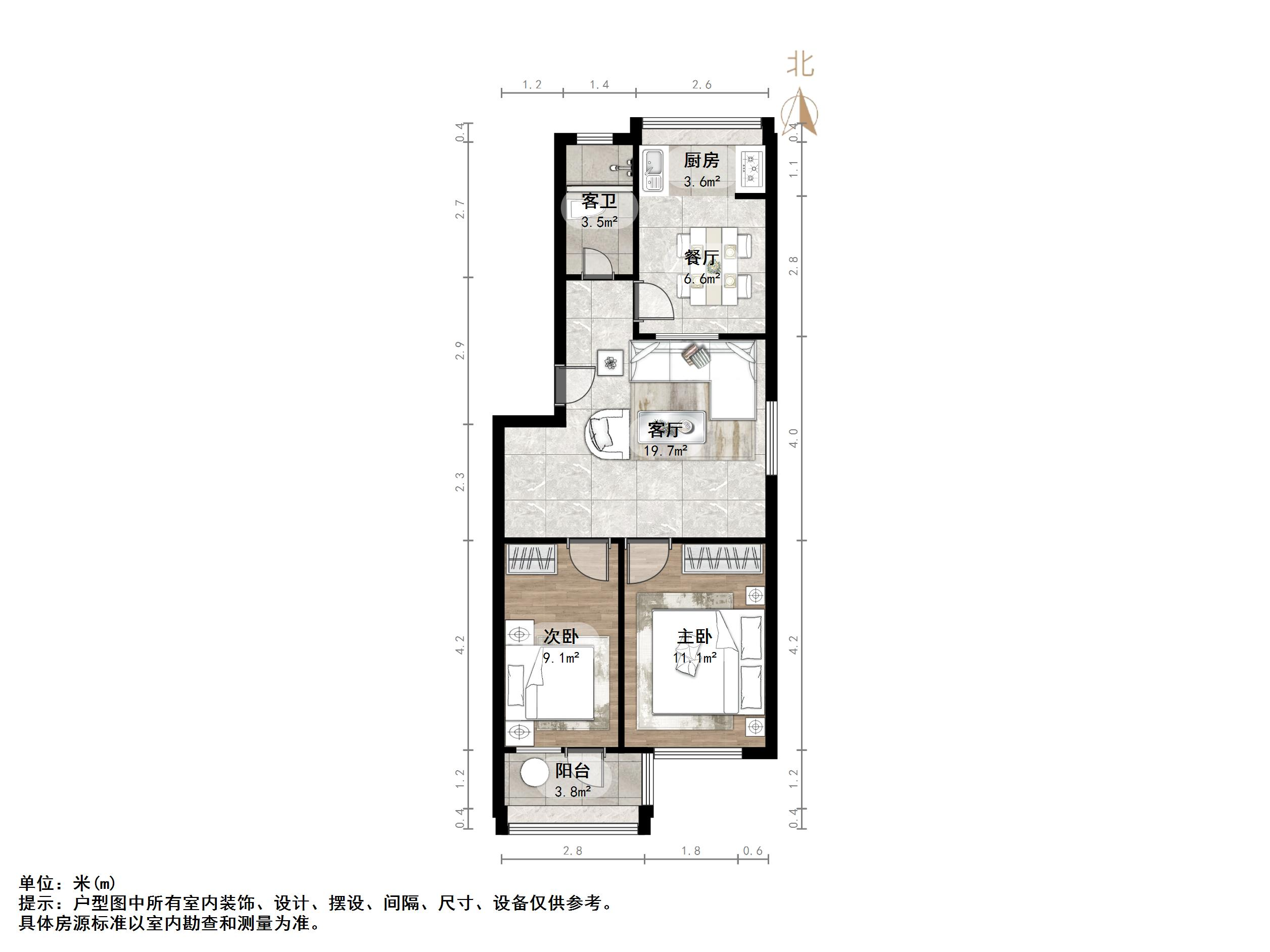 户型介绍:户型方正,南北通透,两室朝阳;布局合理,面积没有浪费;
