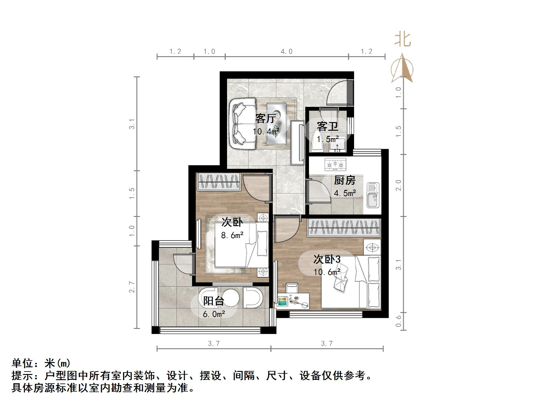 户型介绍:户型方正,南北通透,两室朝阳;布局合理,面积没有浪费;