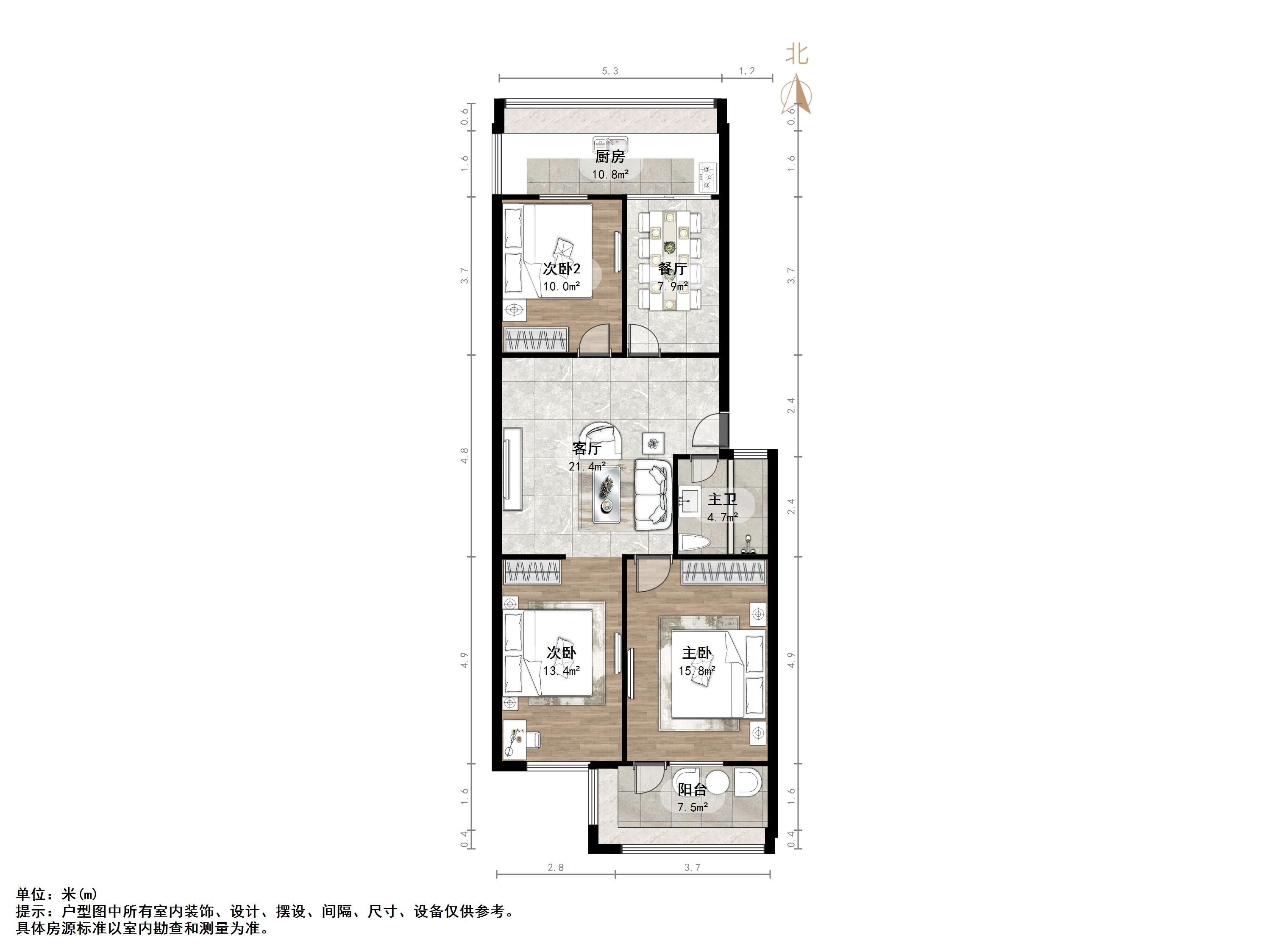 朝向南北 建筑面积100㎡