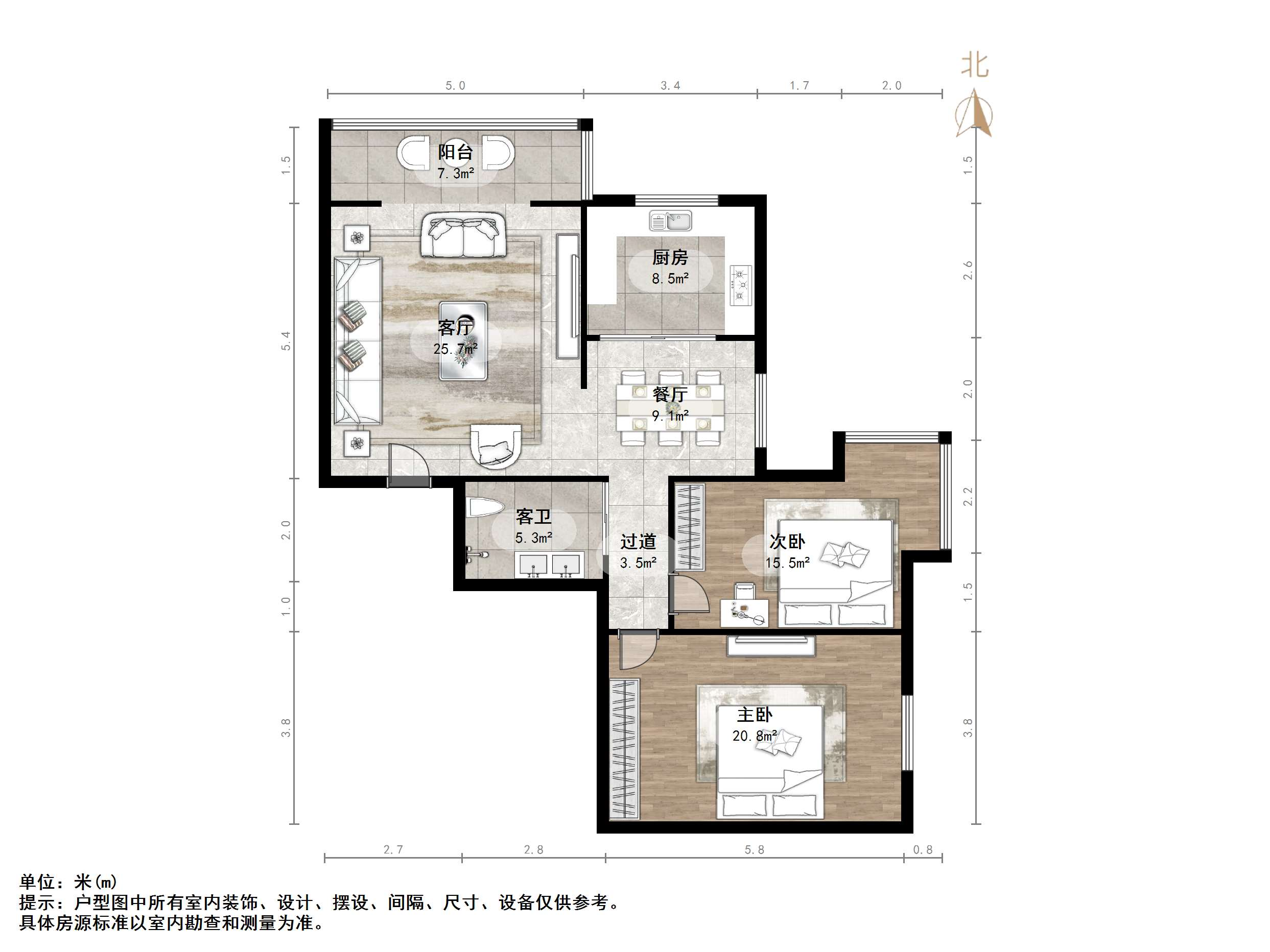 户型介绍:户型方正,南北通透,两室朝阳;布局合理,面积没有浪费;