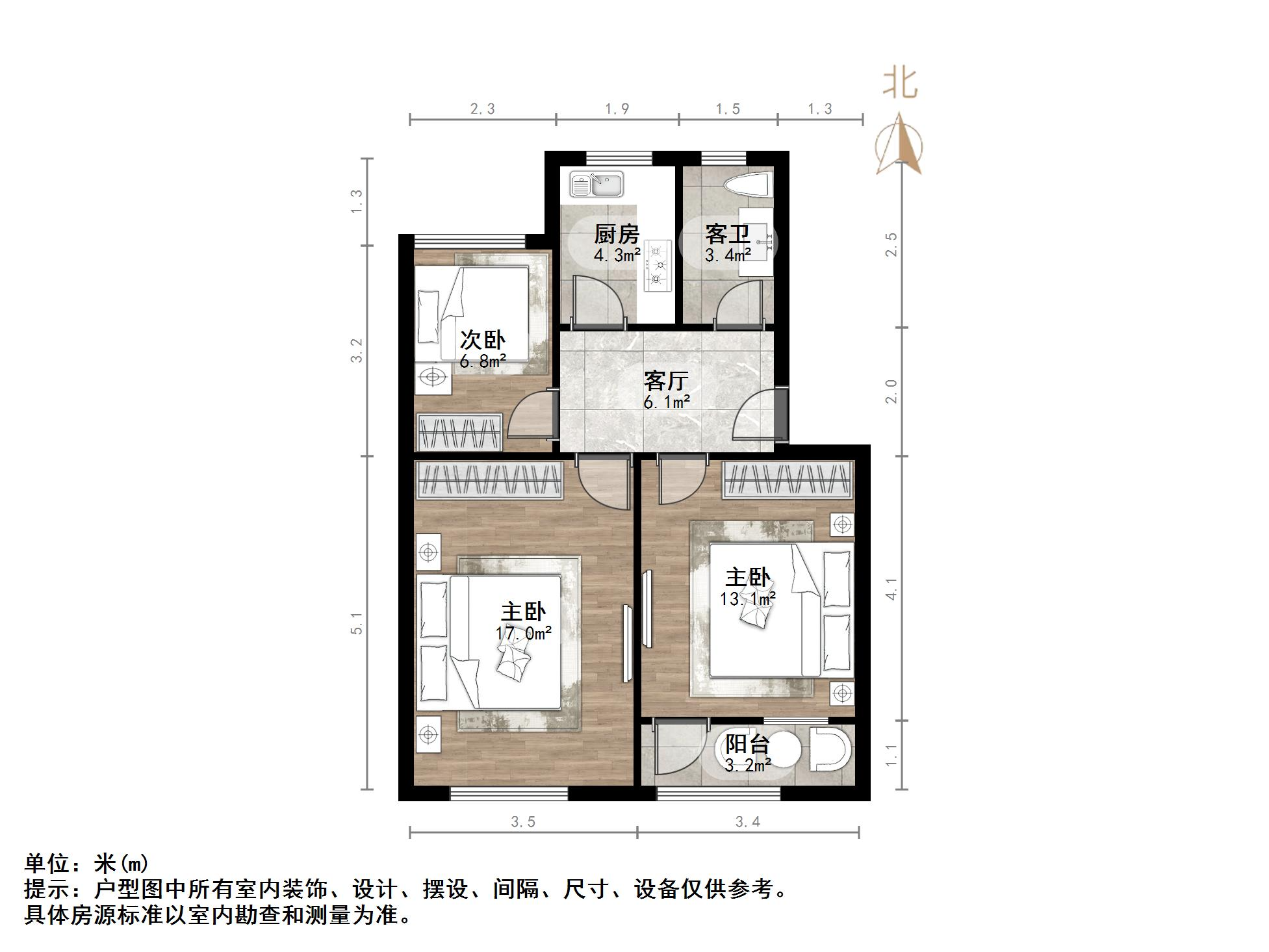 本房源为经典户型两室
