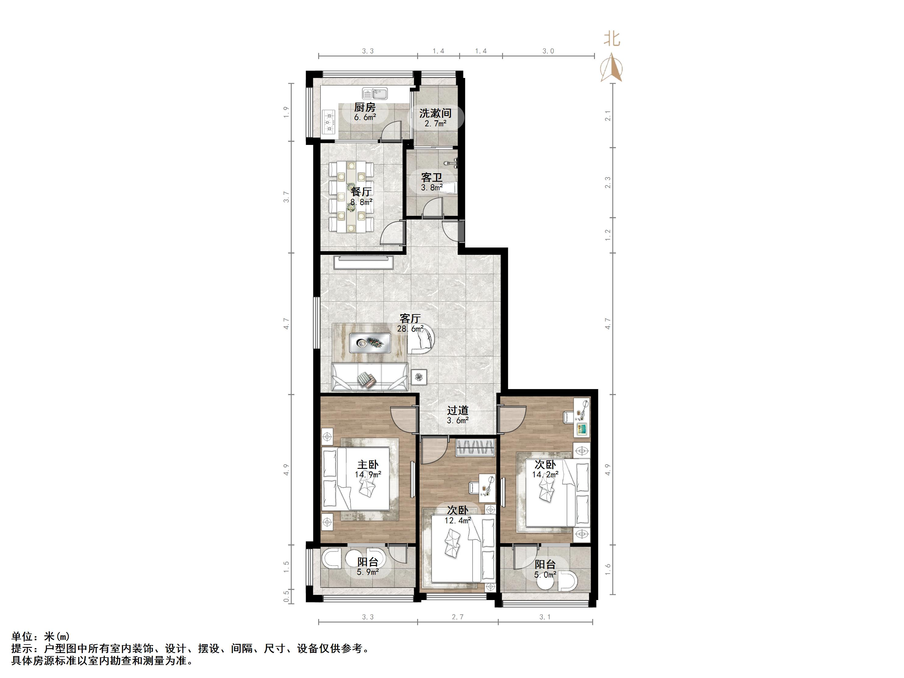 户型介绍:户型方正,南北通透,两室朝阳;布局合理,面积没有浪费;