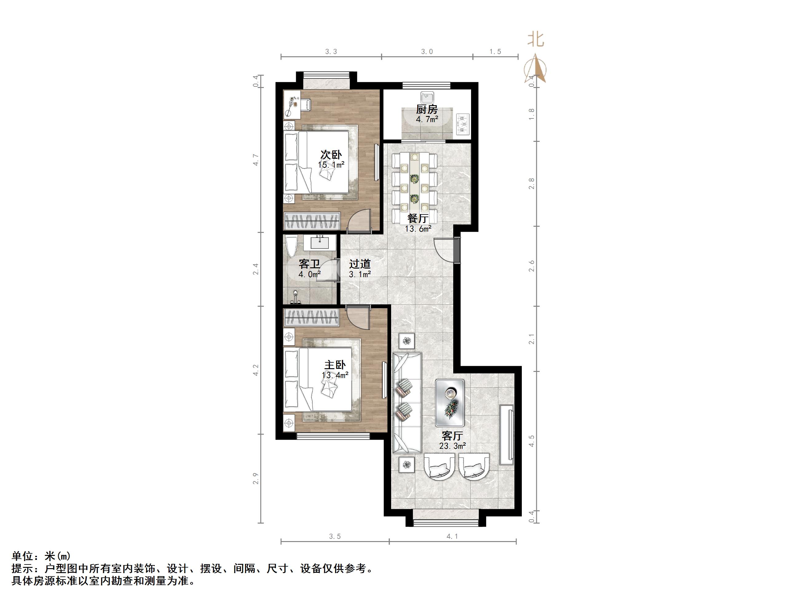 户型介绍:户型方正,南北通透,两室朝阳;布局合理,面积没有浪费;