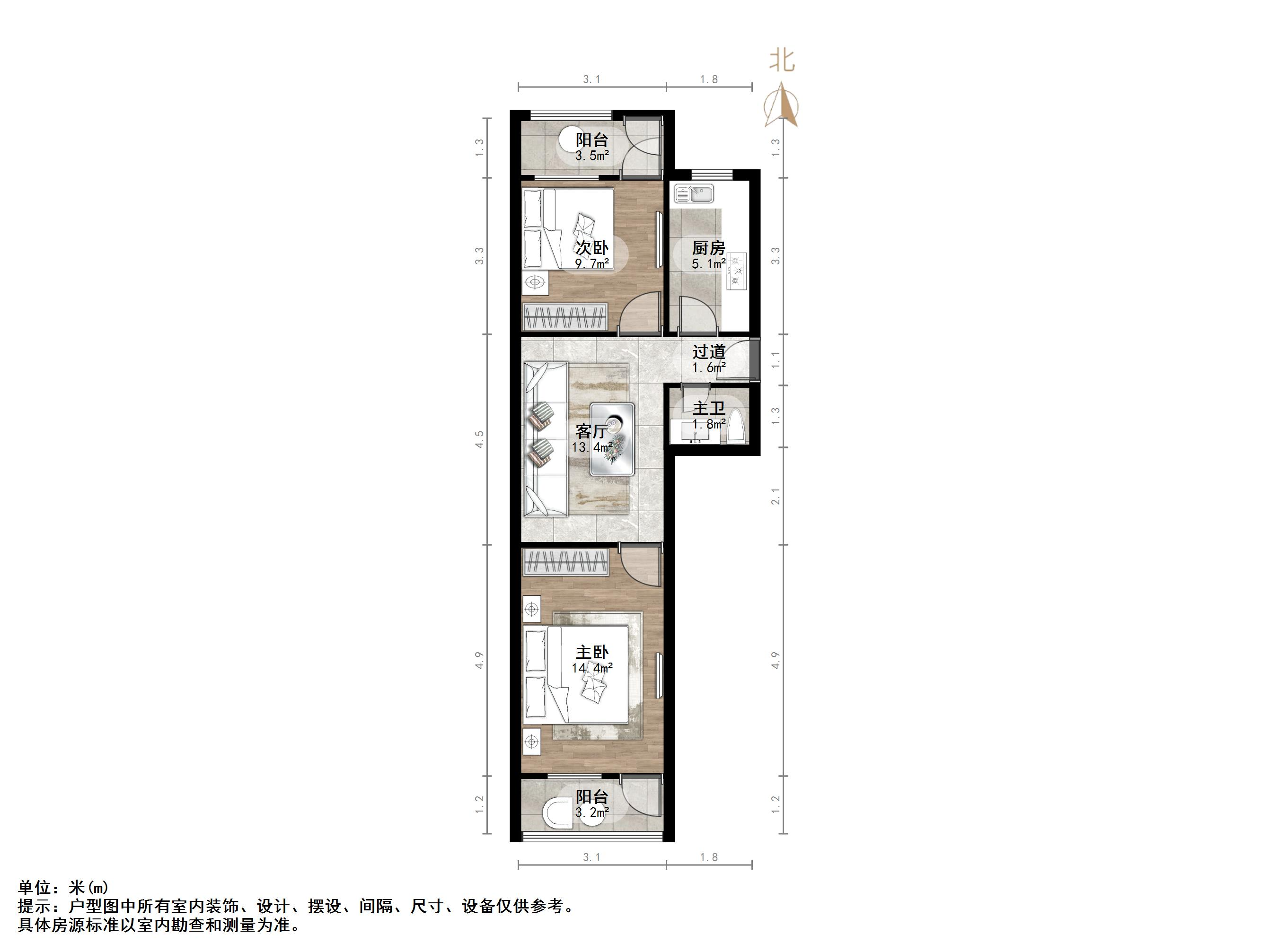 朝向南北 建筑面积65.77㎡