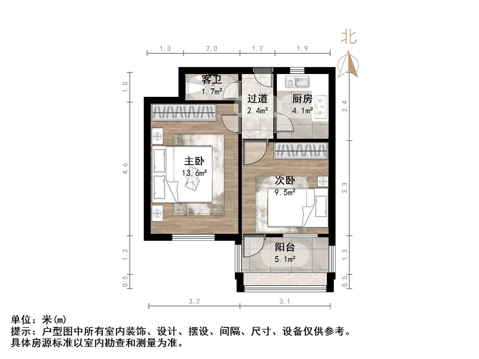 户型介绍:户型方正,南北通透,两室朝阳;布局合理,面积没有浪费;