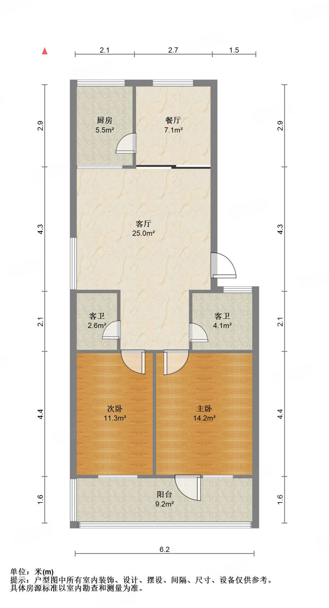 户型介绍:户型方正,南北通透,两室朝阳;布局合理,面积没有浪费;