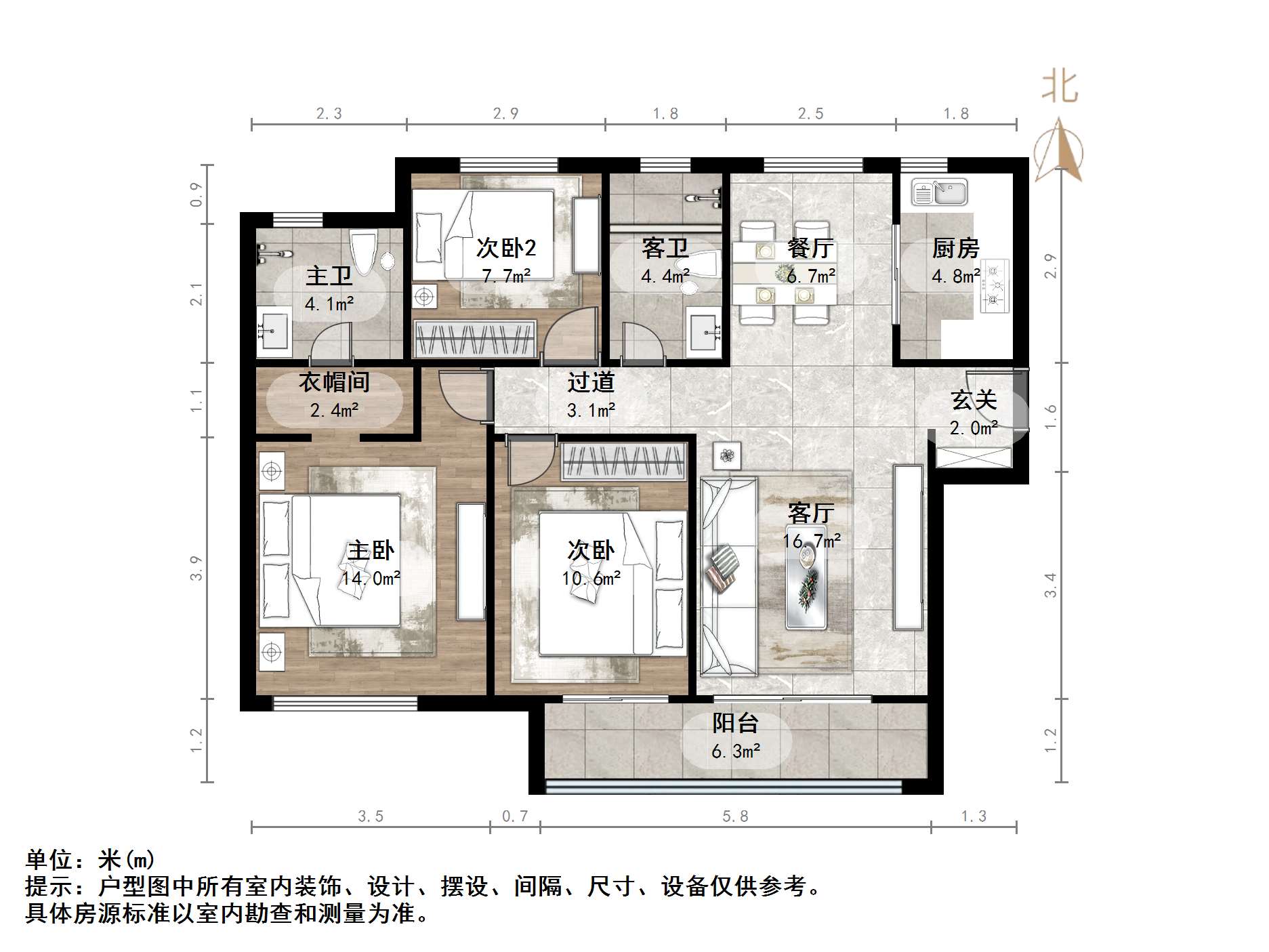 厅室3室2厅2卫2阳台