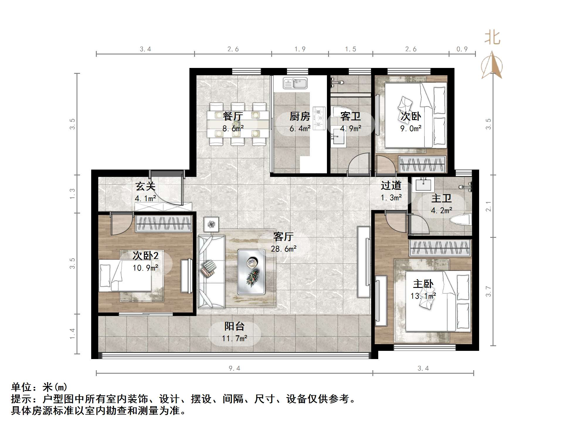 厅室3室2厅2卫2阳台