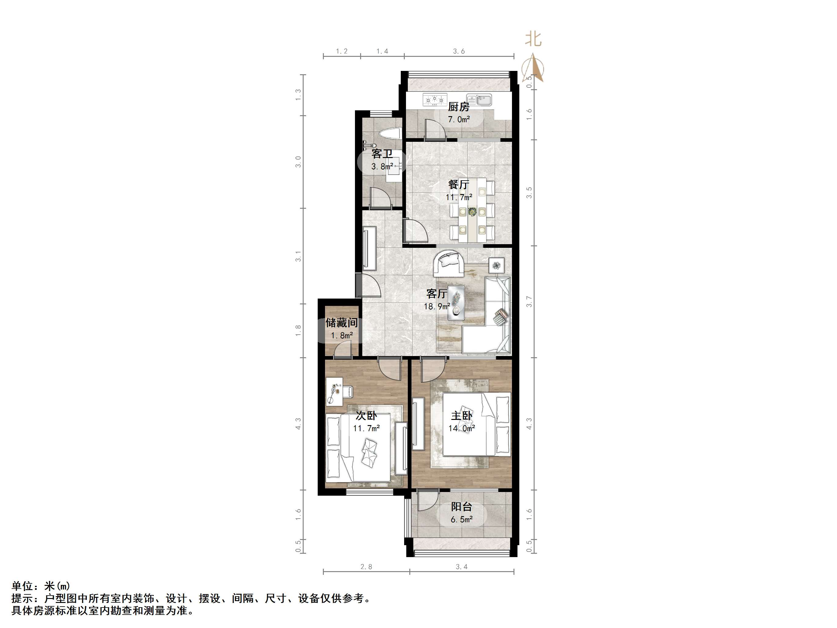 朝向南北 建筑面积85.5㎡