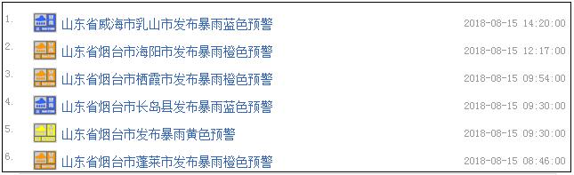 目前,山东仍有六个地区发布暴雨预警: