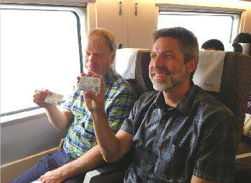 列车上,记者发现每个车厢都有不少外国人乘坐,其中有两名来自美国的乘客,他们表示“复兴号”乘坐体验非常“惊艳”。“很快很平稳,这么快的火车,还是第一次坐。”来自美国的旅客Tom告诉记者,“复兴号”是他乘坐过的最快的高铁,“我们在美国天天坐火车上班,但没坐过这么宽的位子。”